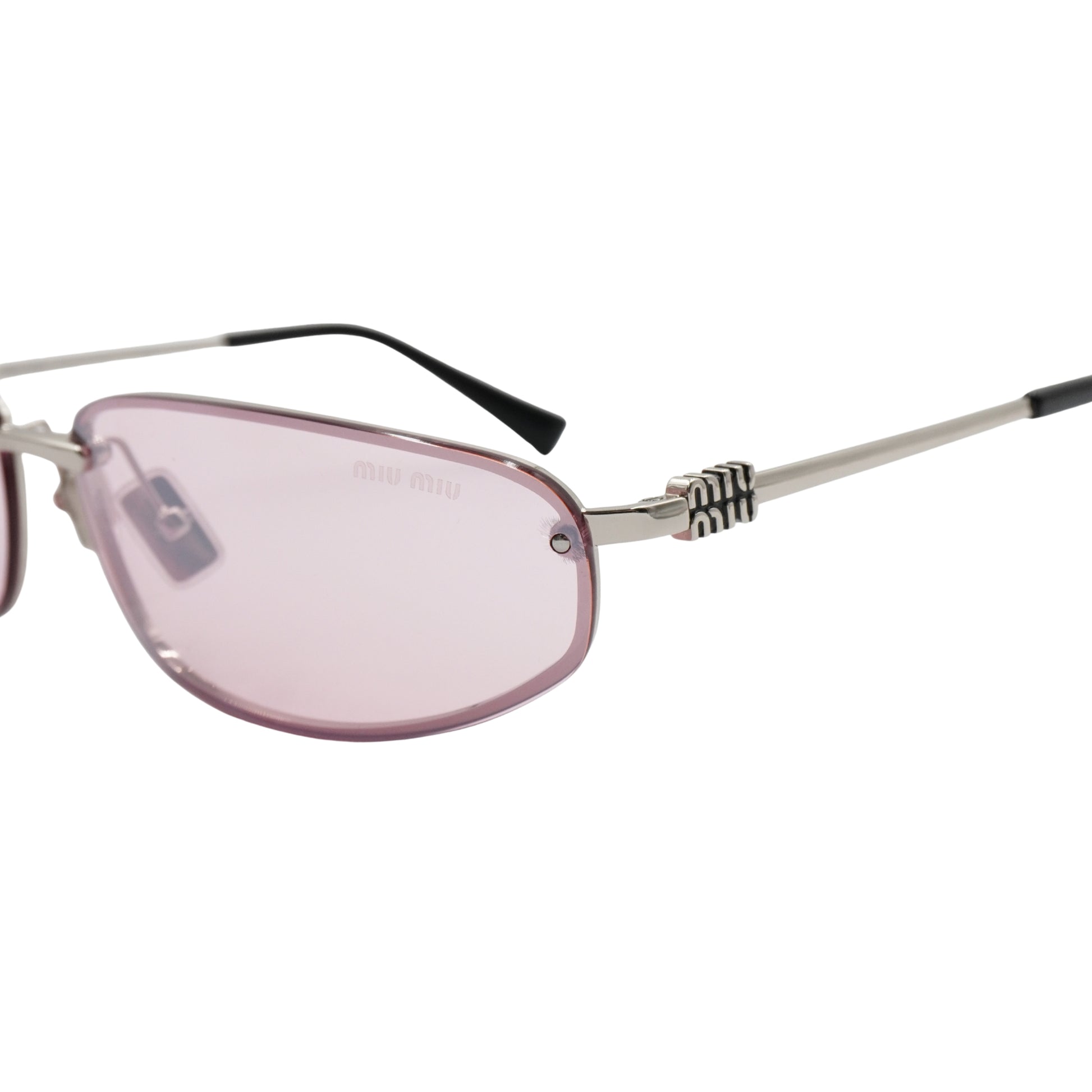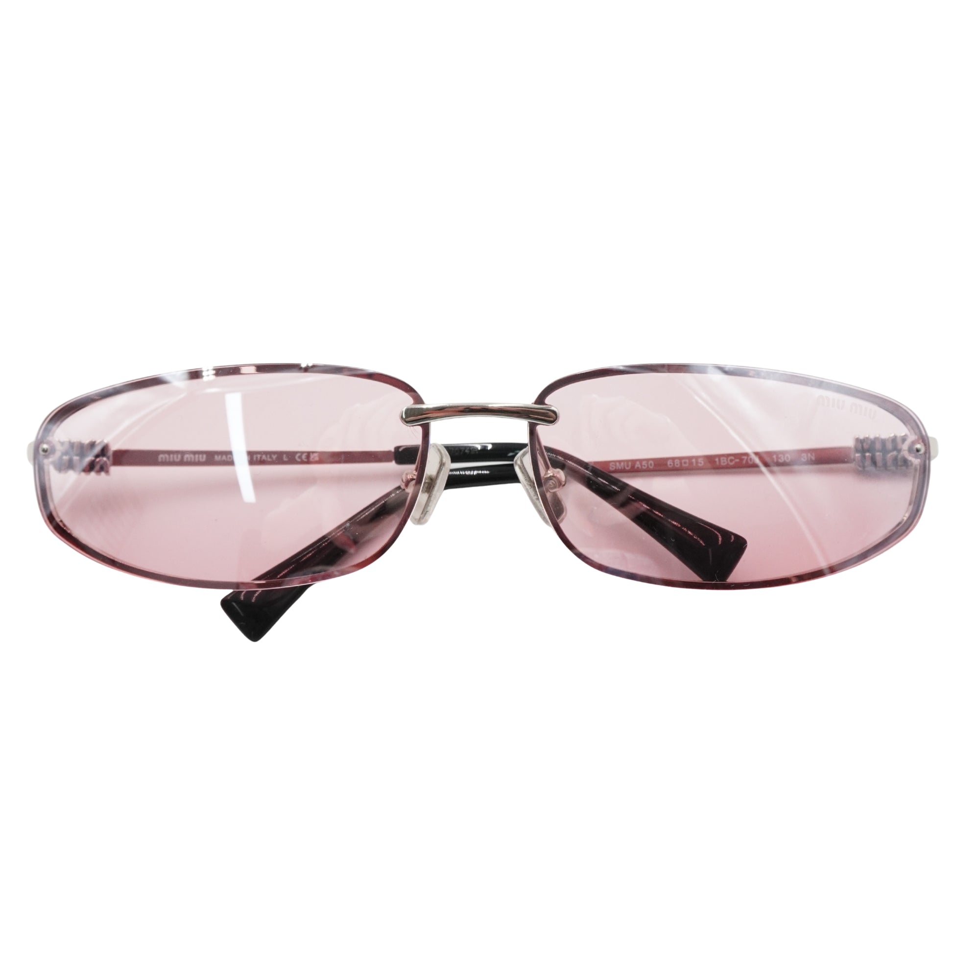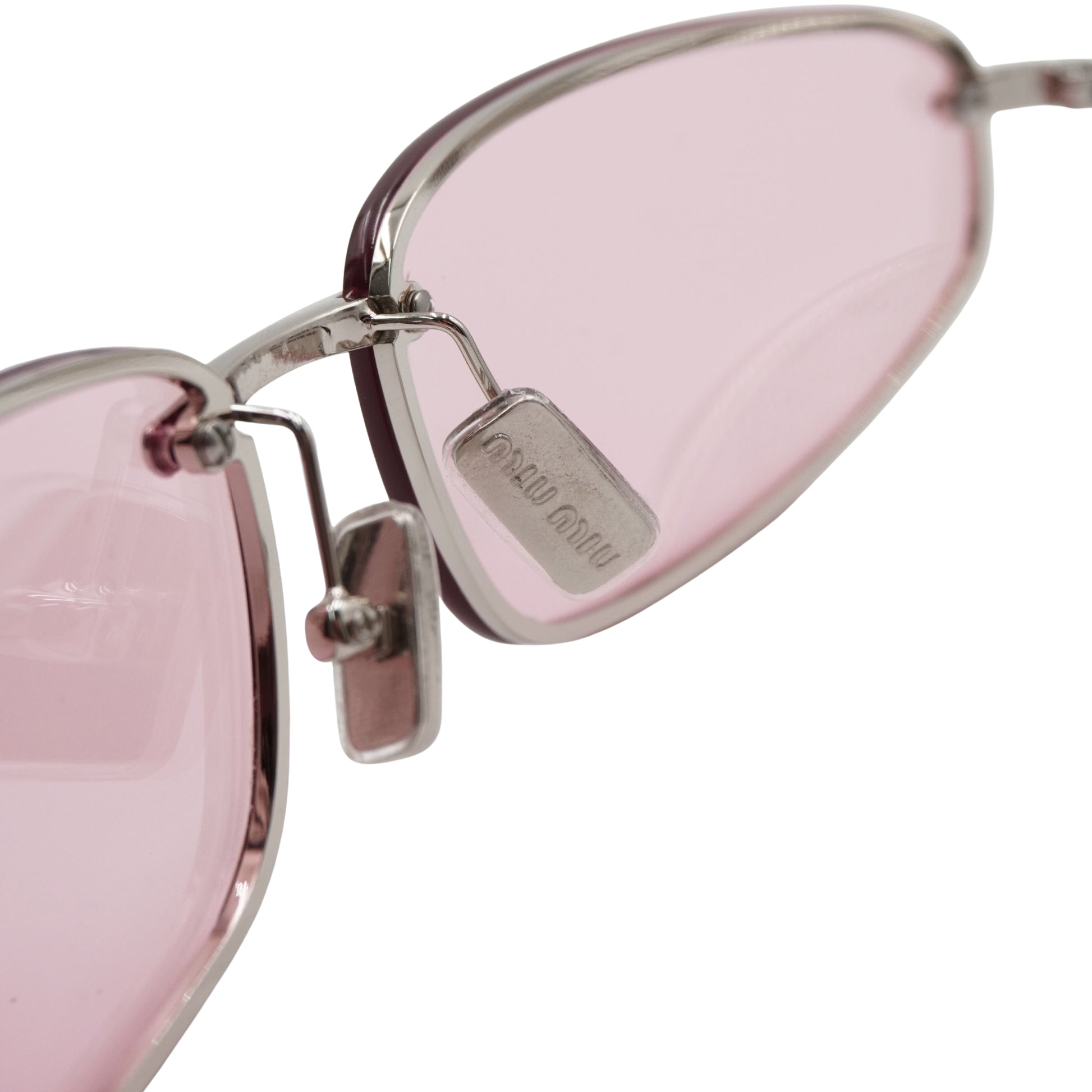 Pieza de archivo en excelente estado de conservación. Las micas rosas mantienen su degradado y transparencia original, mientras que los componentes metálicos plateados lucen brillantes. Las plaquetas nasales cuentan con el grabado de la marca, confirmando su autenticidad. No incluye empaque original.