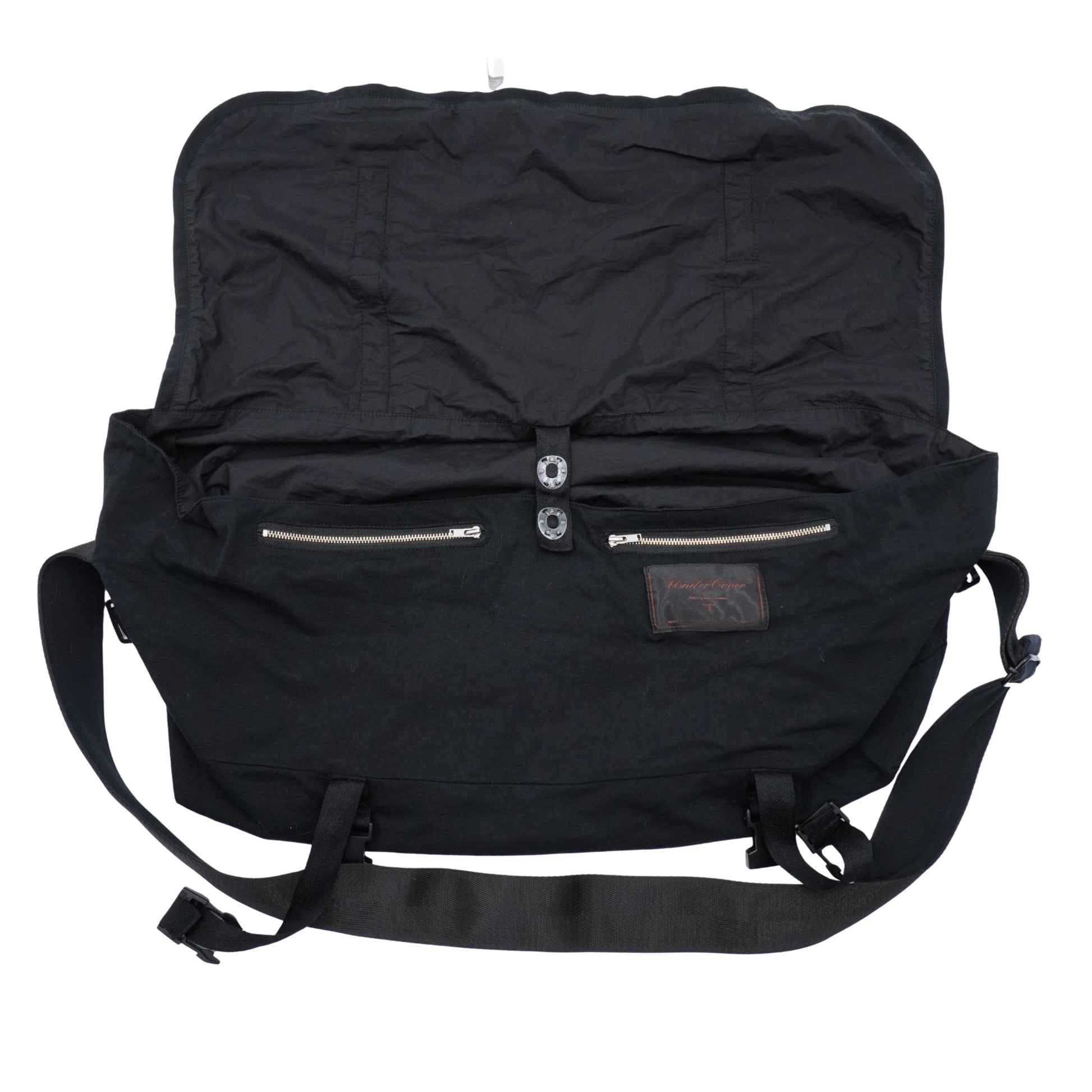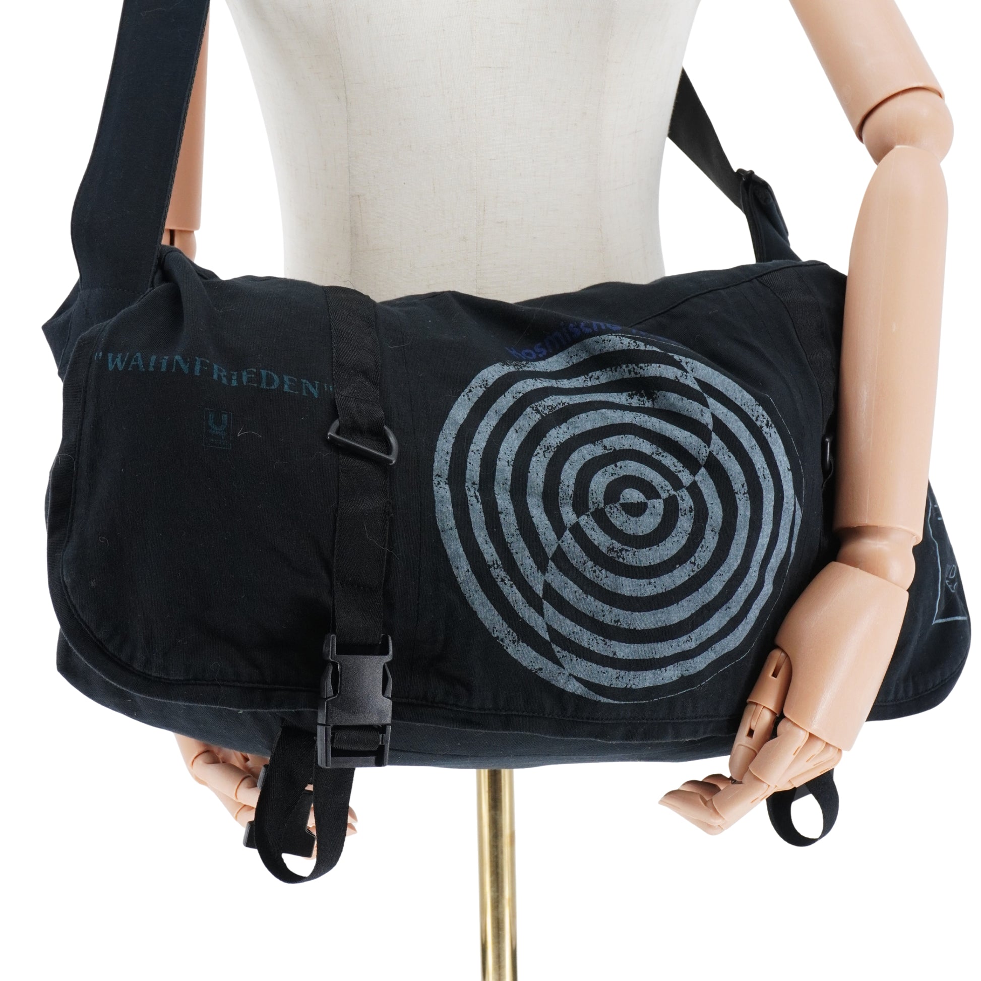 Un bolso mensajero de culto que fusiona el utilitarismo con la narrativa punk de Jun Takahashi. Su construcción en nylon robusto y el impactante gráfico circular central lo convierten en una pieza de declaración visual con gran capacidad funcional.